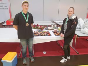 Gesamtsieger wurden Robert Lesser Klasse 16 Fl (2. Lehrjahr Fleischer/ Fleischerei Lesser Brotterode) und Annemarie Dickert Klasse 16 FV Fl (2. Lehrjahr Fachverkäuferin im Lebensmittelhandwerk mit der Spezialisierung Fleischerei/ Fleischerei Fratzscher Schleusingen). Robert war der mit Abstand beste Fleischerlehrling mit 2 Goldmedaillen. Insgesamt haben unsere 8 Teilnehmer 10 Medaillen errungen. Mit einer hervorragenden Einstellung zum Wettbewerb und ganz viel Spaß wurde dieser große Erfolg erstmalig für Teilnehmer aus Thüringen errungen. Dank gebührt dabei natürlich auch in besonderem Maße den Ausbildungsbetrieben der Teilnehmer und dem SBBZ Suhl/ Zella-Mehlis.