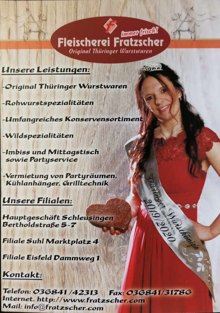 Wurstkönigin Wurst – ganz majestätisch unsere amtierende Wurstkönigin 2019-2022 Jennifer Risch – Fleischerei Fratzscher/Schleusingen: